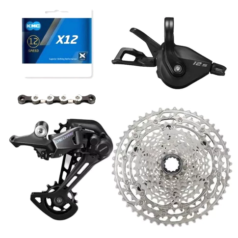 Transmision 1X12V Shimano Deore M6100, Piñon MS 10-51T, Shifter c/ Abrazadera, Con Cadena KMC Negro/Plata